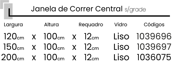 Janela de Correr Central s/ grade