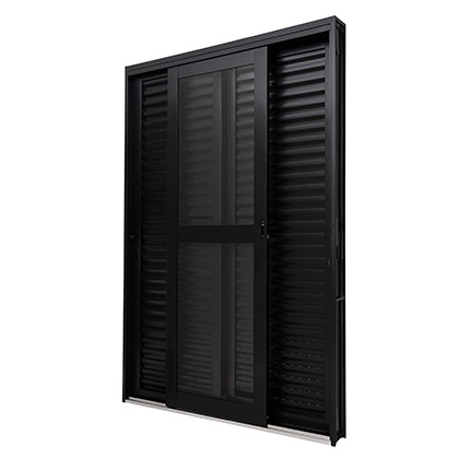 Porta de Correr Lateral 1 folha c/ vidro e 2 folhas venezianas