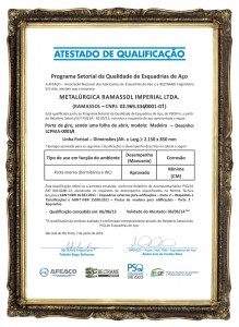 Com o intuito de atender todas as obrigações legais e consequentemente melhorar a qualidade de seus produtos, o Grupo Ramassol qualificou suas Portas de Abrir conforme diretrizes do PSQ – Caixilhos de Aço gerenciado pela AFEAÇO (Associação Nacional de Fabricantes de Esquadrias de aço) e auditado pela Beltrame Engenharia.
